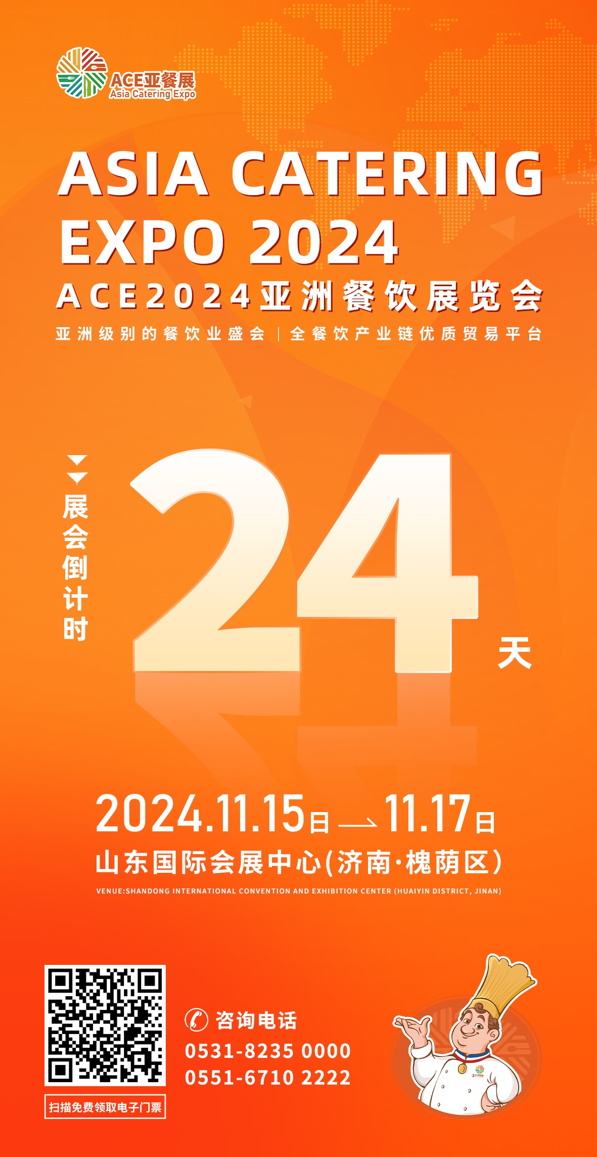 為更好的服務餐飲業(yè)發(fā)展,凸顯展會平臺價值。在ACE2024亞洲餐飲展覽會(簡稱ACE2024亞餐展)上,將舉辦ACE2024亞餐展開幕式暨2024 餐飲美食新趨勢峰會、破內卷,贏未來--2024餐飲連鎖業(yè)高質量發(fā)展論壇、ACE2024 亞洲烹飪大賽、2024 咖啡師技能大賽、2024 調酒師大賽、2024烘焙大賽、山東省調味品協(xié)會2024年度第四屆廠商對接會——走進濟南暨魯晶杯美食藝術大賽、2024亞餐展跨界交流對接會、2024 全球餐飲跨國采購對接會等一系列高質量論壇、交流會、對接會、大賽等配套現(xiàn)場活動,為餐飲人帶來一場思想、視覺盛宴,幫助餐飲人了解行業(yè)現(xiàn)狀及發(fā)展趨勢,搭建起餐飲業(yè)溝通交流、技能切磋的有效橋梁。